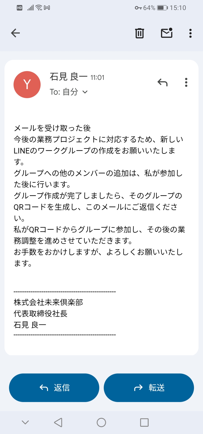 当方のお問い合わせ用のメールアドレスinfo@mirai-club.comに不審なメールが届きました。